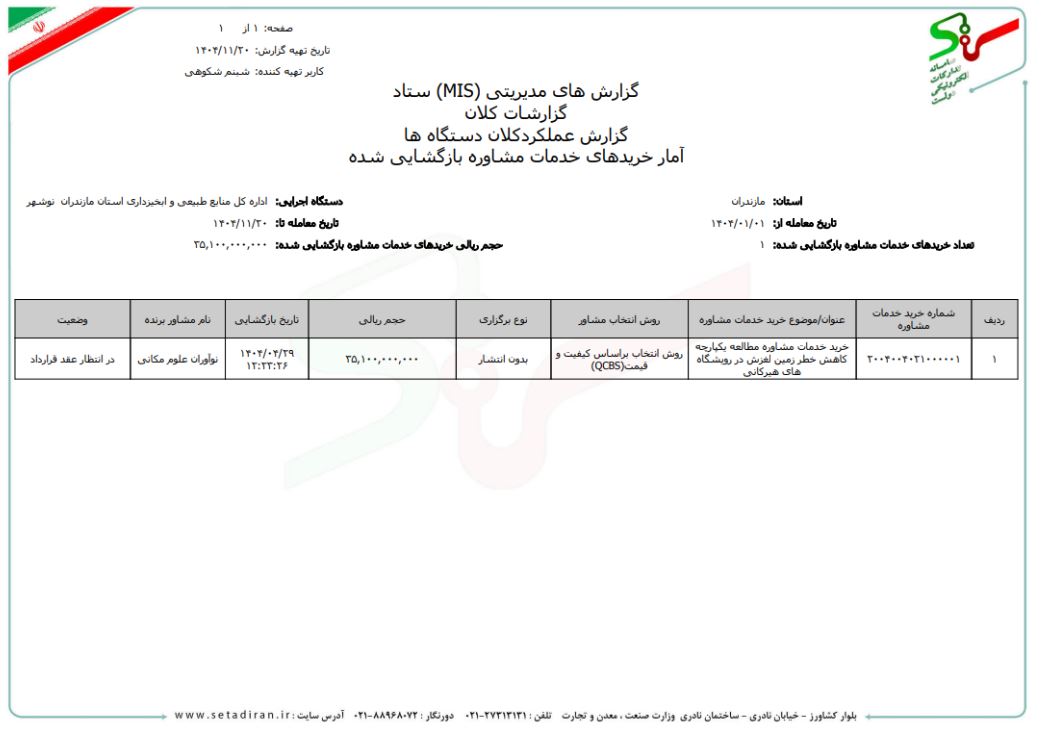 گزارش خرید خدمات مشاوره بازگشایی شده