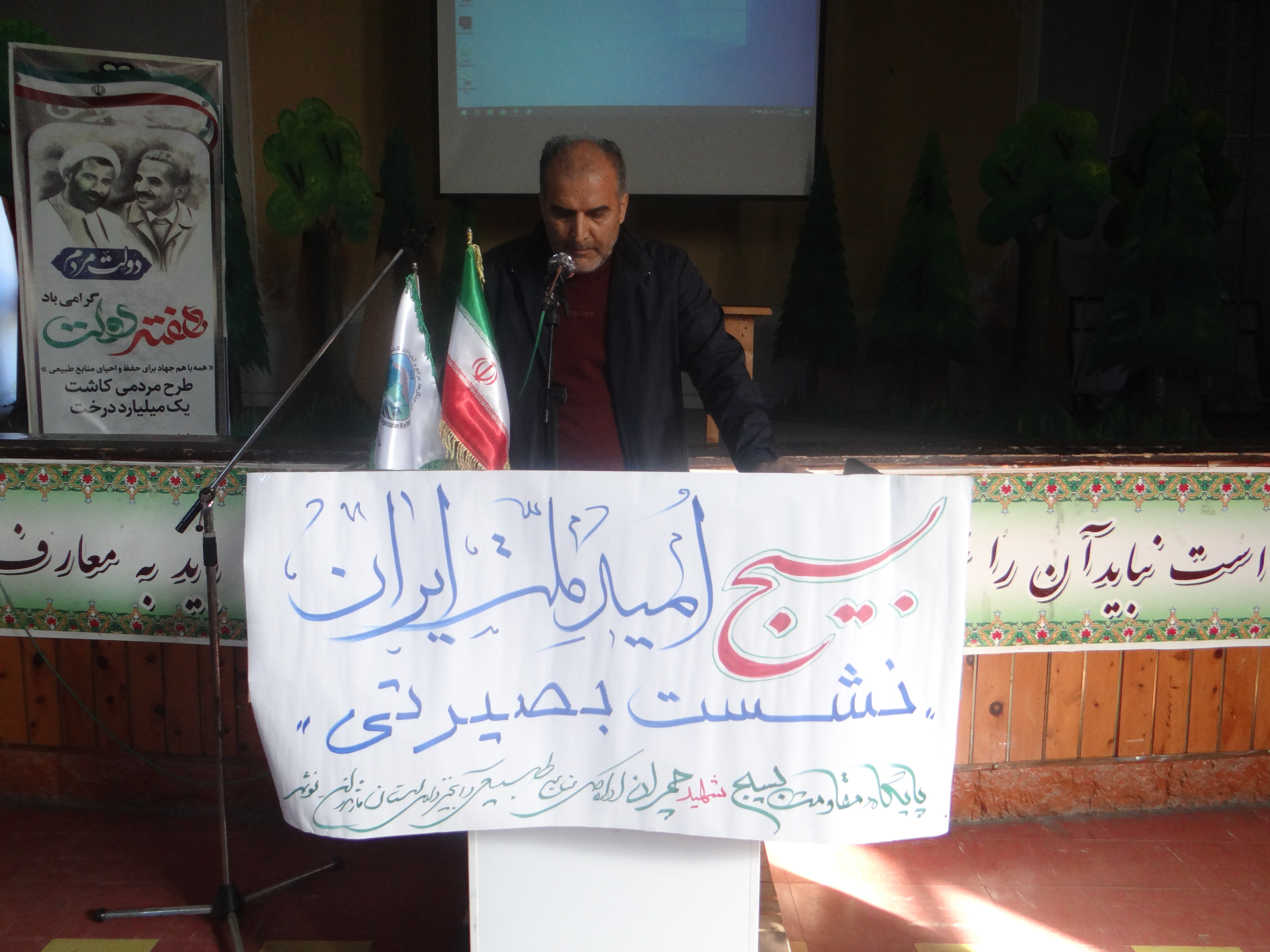 پیام مدیر کل منابع طبیعی و آبخیزداری استان مازندران نوشهر به مناسبت هفته بسیج توسط کاوه جوادی مسئول منابع طبیعی و آبخیزداری غرب مازندران قرائت شد